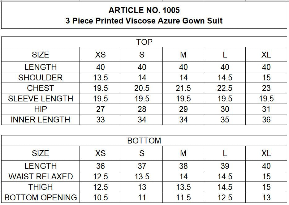 3 Pcs - Printed Viscose Azure Gown